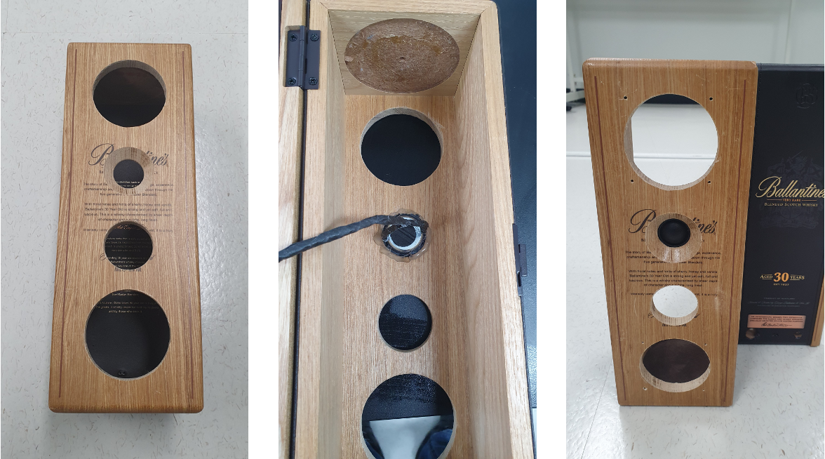 이제 발랜타인 박스를 스피커로 변모 시키기 위해 가공을 시작해 보자.