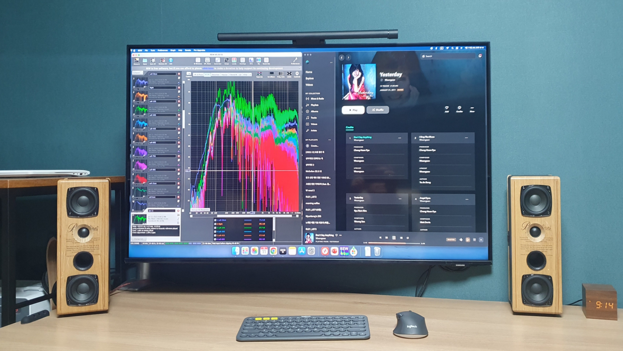 ② 저음 약화 예상 (좌/우 스피커가 좁은 공간을 나눠 쓰다 보면... 당연한 결과)