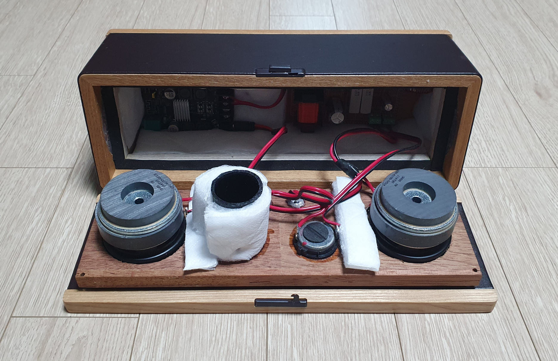 다만, 이 방식이면 울림통의 공간이 줄어들어 저음에 악영향을 미치는 건 어쩔 수 없을 듯하다.