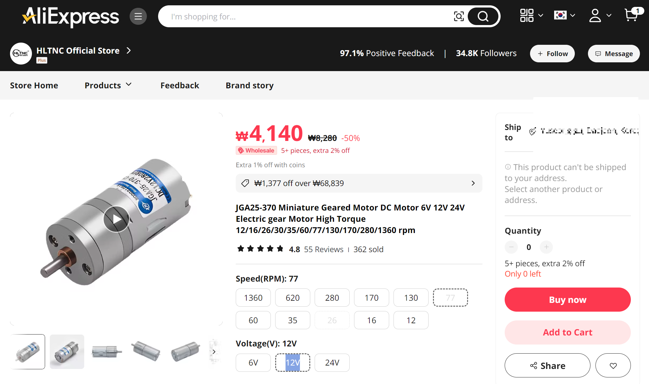 알리익스프레스는 진짜 없는 게 없다. 소형 기어드(geared) 모터도 판다.